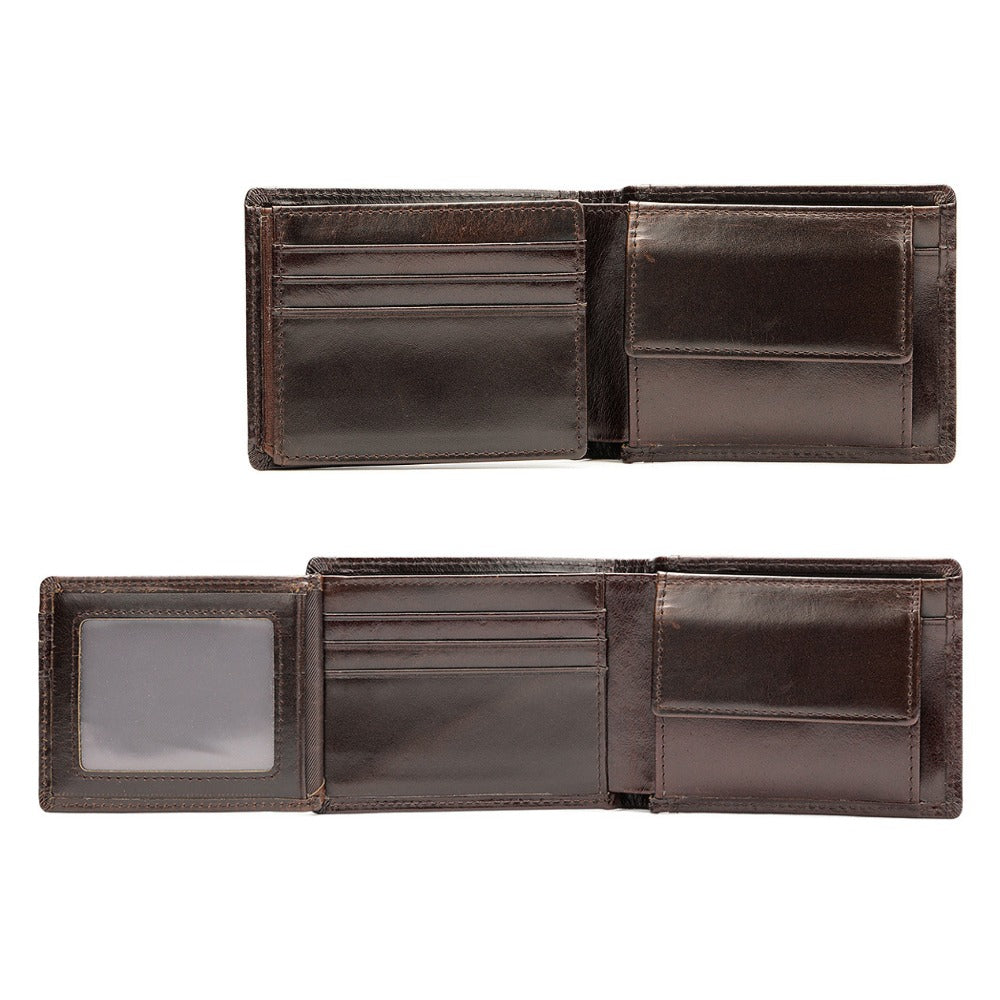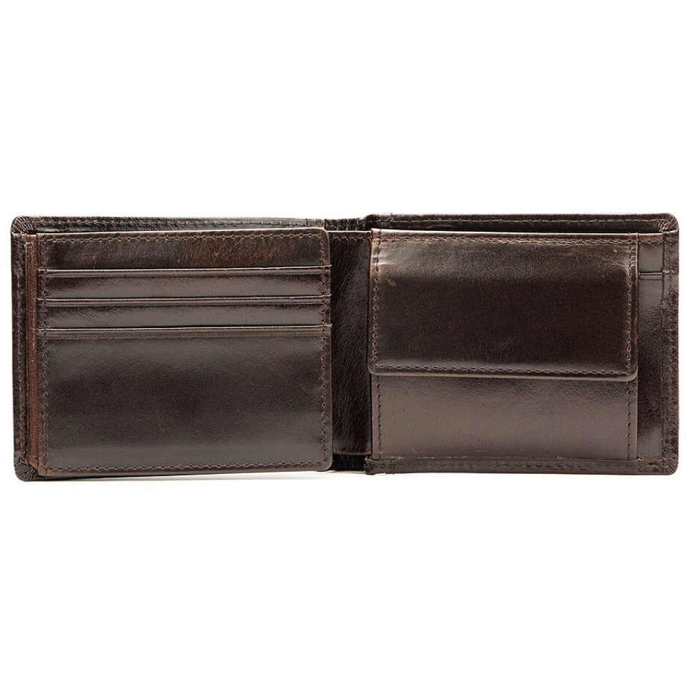 Billetera hecha a mano de cuero 100% genuino vacuno, con efecto desgastado